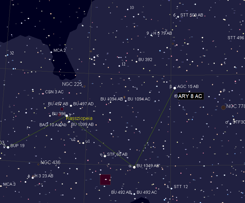 Az ARY 8 három, közel azonos fényességű csillag rendszere. Könnyen megtalálható és már kistávcsővel is bontható a nagy szeparáció miatt.