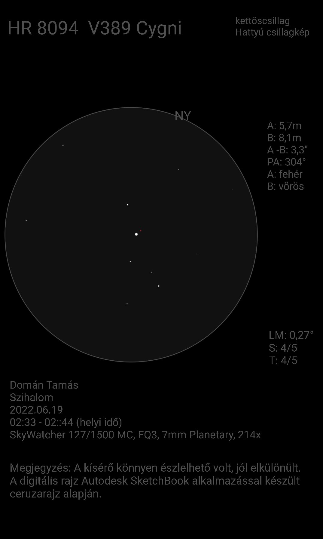 A Hattyú csillagkép egyik könnyen megtalálható kettőscsillaga a HR 8094. Fényes, fehér főcsillag mellett egy halványabb vörös kísérőt láthatunk. Érdemes nagy nagyításon nézni, bár a szeparáció 3,3".