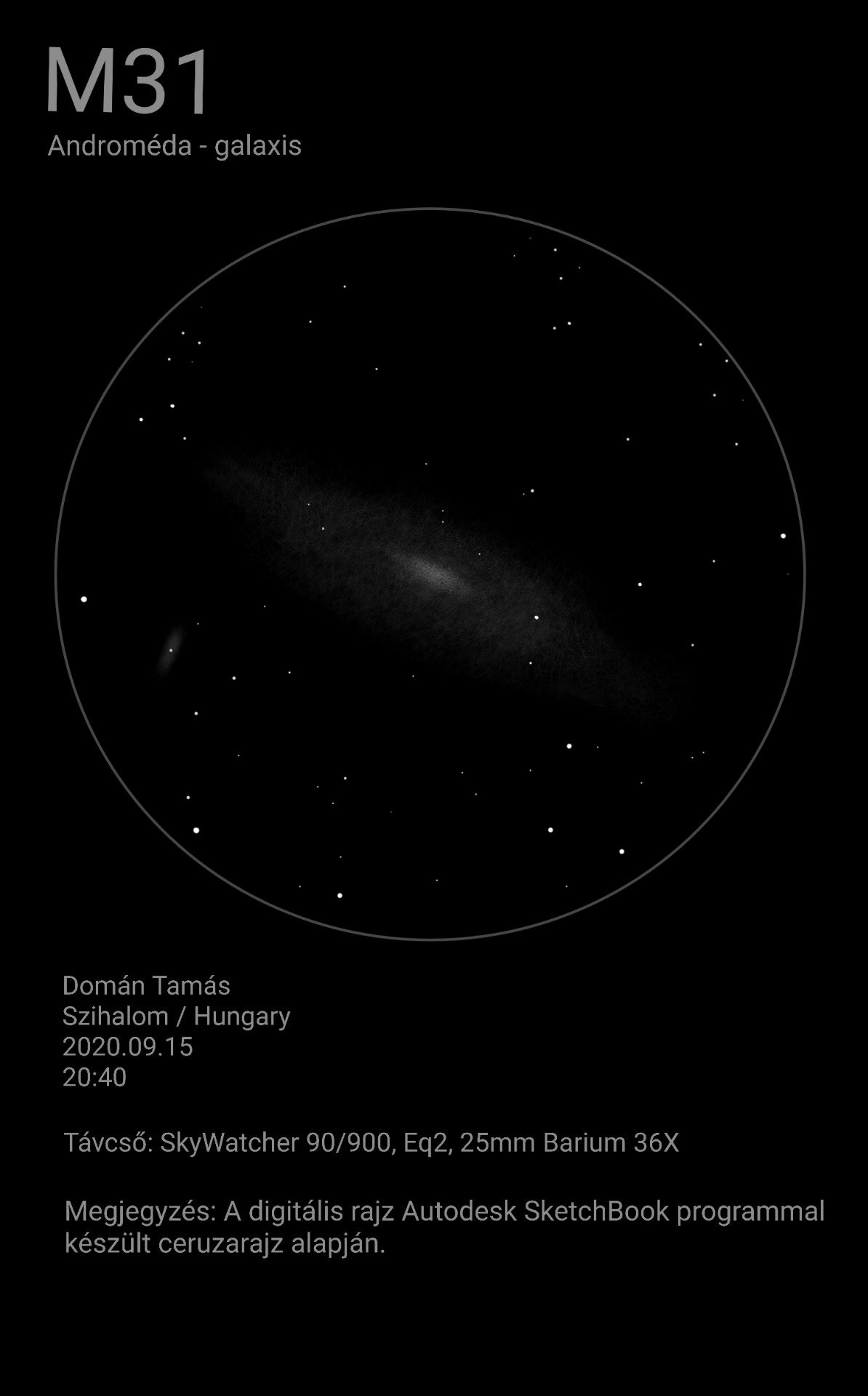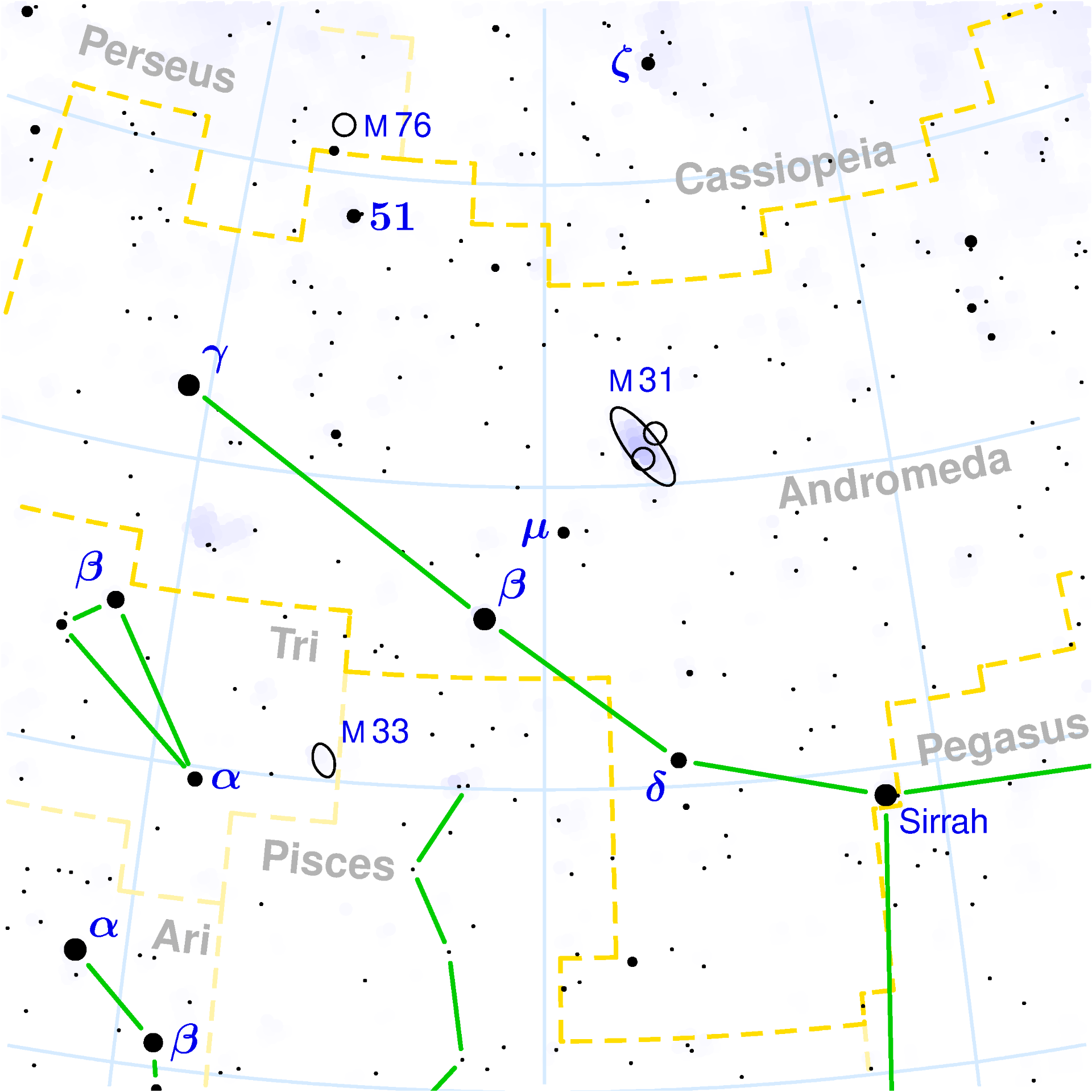 Az Androméda - galaxis, vagy Androméda - köd egy spirálgalaxis az Androméda csillagképben. Sötét égbolt alatt már szabad szemmel is megpillantható. Binokulárral, vagy nagy látómezejű távcsővel kis nagyítással jól megfigyelhető. Ahhoz, hogy megtaláljuk a galaxist, keressük meg az Alfa, Béta, Gamma és Delta vonalat. Az Alfából menjünk két csillagnyit a Béta irányába, majd erre merőlegesen észak felé keressünk két halvány csillagot a Műt és a Nűt. Az Androméda - galaxis a Nű Andromedae mellett fekszik. Távolsága a Naptól 2,5 millió fényév. Átmérője 220 ezer fényév. Távcsőben sötét égen jól kirajzolódik az M31 két kísérőgalaxisa az M32 és az NGC 205 is.