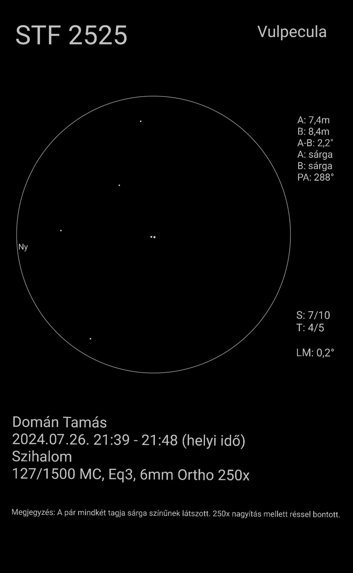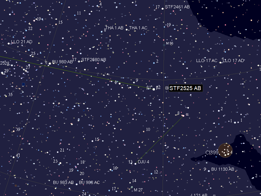 Az STF 2525 a Vulpecula csillagképhez tartozó kettős. Könnyen kereshető az Albireotól kiindulva. Viszonylag halvány és szoros pár, így érdemes nagy nagyítást használni ahhoz, hogy elkülönüljenek. Mindkét csillaga sárgás színű.