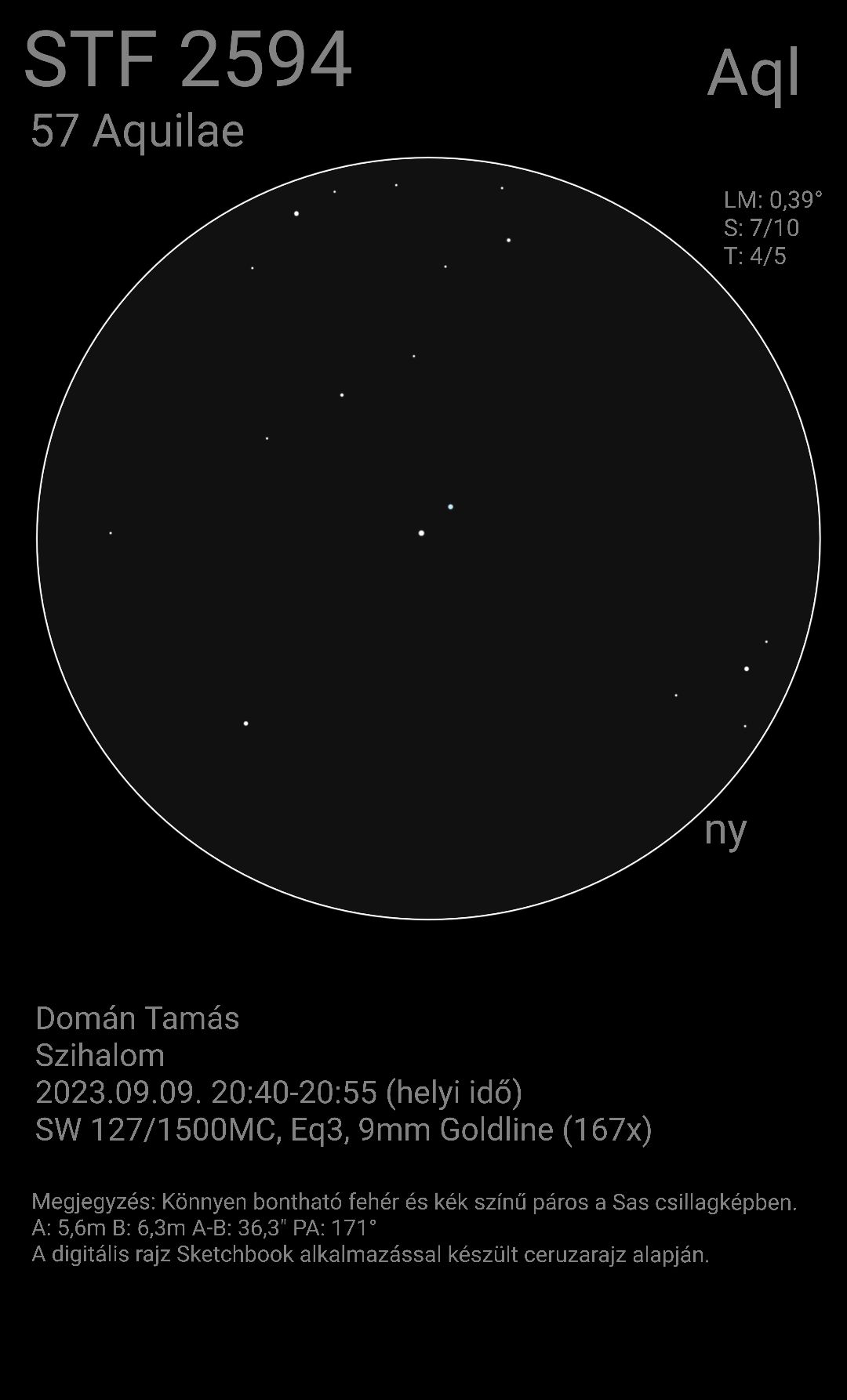 Az STF 2594 ( 57 Aquilae) a Sas csillagkép egyik kettőse. Könnyen bontható fehér és kék színű csillagokkal. Csillagai között kis fényességkülönbség van a szeparáció nagy, így akár kezdőknek is könnyű célpont lehet, bár nem annyira látványos a környezete, vagy maguk acsillagok színe sem.